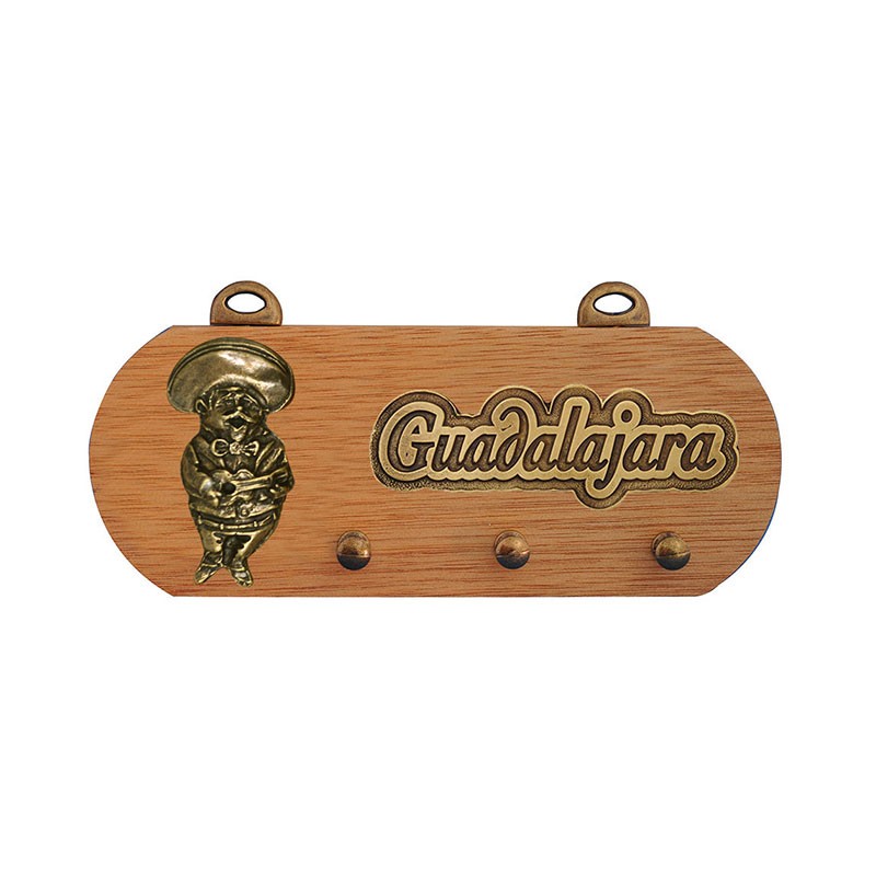 Portallave latón con la ilustración de un mariachi tocando guitarra típico del folklor en México. Un recuerdo de Guadalajara para disfrutar el tradicional tequila mexicano.