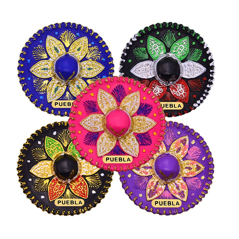 Magneto de resina en forma de un sombrero charro, típico del país. El souvenir ideal que podra uno pegar en su refrigerador para recordar sus vacaciones en Puebla, México.