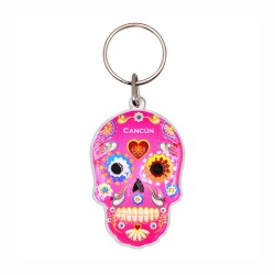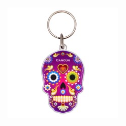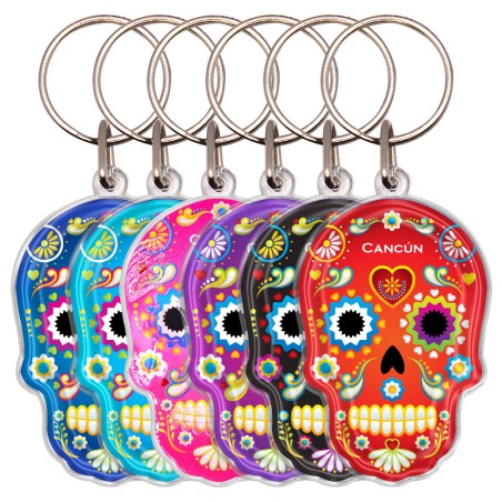 Ese llavero de acrílico en forma de calavera, típico de la tradición del día de Muertos en México está disponible en 6 colores diferentes: azul, morado, naranja, negro, rosa y verde. Es el souvenir ideal para los turistas de vacaciones en Cancún.