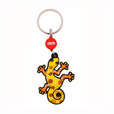 • Llavero de playa pvc Lagartija amarilla. Souvenir de Cancún, México