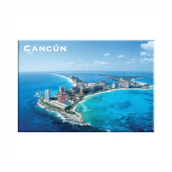 Fotoíman con vista aerea de la zona hotelera de Cancún. Con su toma panorámica, es el souvenir perfecto para pegar en el refrigerador y recordar sus vacaciones en el México.
