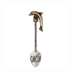 • Cuchara de colección latón con lafigura de un delfín. Souvenir de Cancún, México