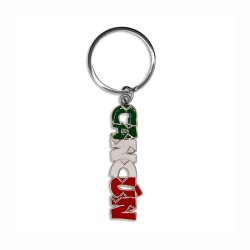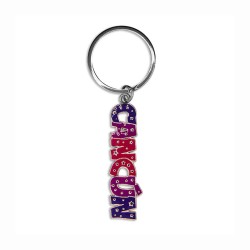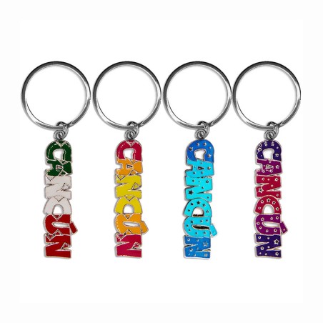Llavero de metal con el nombre de Cancún. Disponible en colores tricolor, morados, azules y amarillas, es el souvenir ideal para que los turistas recuerden sus vacaciones en Cancún.