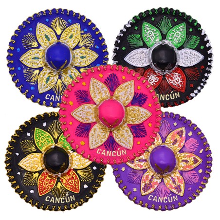 Magneto de resina en forma de un sombrero charro, típico del país. El souvenir ideal que podra uno pegar en su refrigerador para recordar sus vacaciones en Cancún.