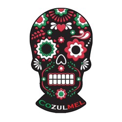 Magneto pvc en forma de calavera típico de la tradición del día de Muertos en México. Disponible en 5 colores diferentes, amarillo, blanco, rojo, negro y rosa, es un souvenir perfecto de Cozumel para pegar en el refrigerador.