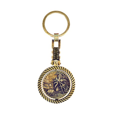 Llavero giratorio de latón con la ilustración de una palmera, típica de las playas de Cozumel. El souvenir ideal para recordar sus vacaciones en Cozumel.