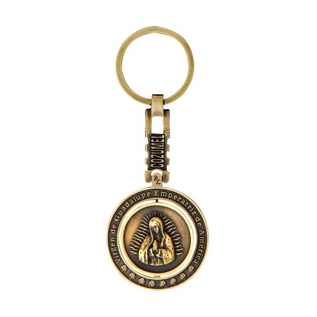 Llavero giratorio de latón con la Virgen de Guadalupe