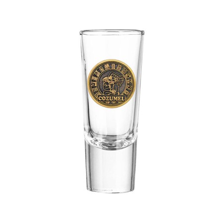 Un tequilero con la ilustración del Calendario Maya, emblemático de México para disfrutar el tradicional tequila mexicano recordando sus vacaciones en Cozumel.