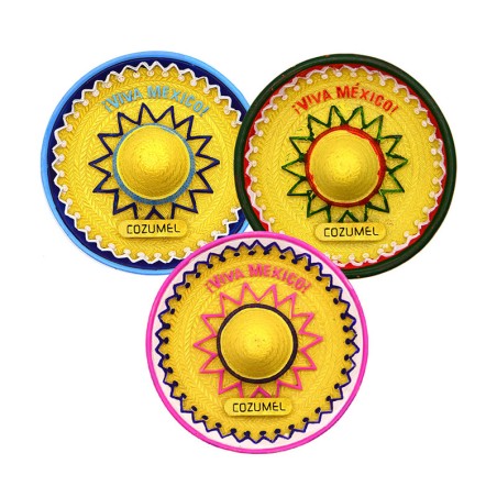 Magneto de resina en forma de un sombrero de paja, típico del país. El souvenir ideal que podra uno pegar en su refrigerador para recordar sus vacaciones en Cozumel.