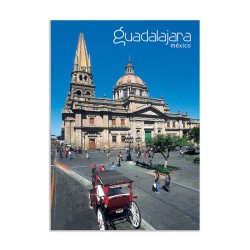 Tarjeta postal de la Catedral y una Calandria típica de Guadalajara. Con su hermosa vista y su impresion en cartulina importada de primera calidad, es un articulo base para el turista viajando en México y la mejor forma de compartir sus vacaciones en Guadalajara.