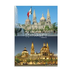 Tarjeta postal de la Catedral Dia y Noche. Con su impresion en cartulina importada de primera calidad, es un articulo base para el turista viajando en México y la mejor forma de compartir sus vacaciones en Guadalajara.