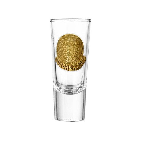 Un tequilero con el Calendario Azteca, emblemático de la cultura prehispánica de México para disfrutar el tradicional tequila mexicano recordando sus vacaciones en Guadalajara.