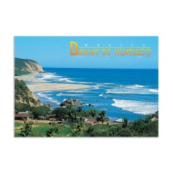 Tarjeta postal con vista a la playa de La Bocana. Con su vista panoramica y su impresion en cartulina importada de primera calidad, es un articulo base para el turista viajando en México y la mejor forma de compartir sus vacaciones en Huatulco, México.
