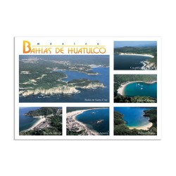 Tarjeta postal de las Bahias de Huatulco. Con sus vistas panoramicas y su impresion en cartulina importada de primera calidad, es un articulo base para el turista viajando en México y la mejor forma de compartir sus vacaciones en Huatulco, México.