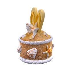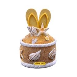 Ese alhajero de resina con acabado arena es ideal para guardar joyerias o pequeños tesoros. Su diseño y la figura de unas chanclas representan las maravillosas playas de Isla Mujeres. Con su plaquita del destino, es el souvenir perfecto para recordar a México.