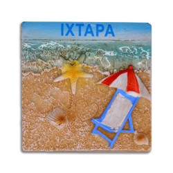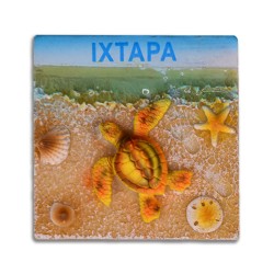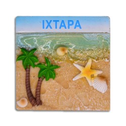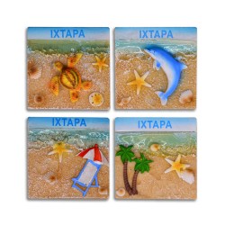 Esos magnetos de resina cuadrados con ilustraciónes de playas de México es el souvenir ideal para pegar en el refrigerador como recuerdo de unas vacaciones en Itapa.