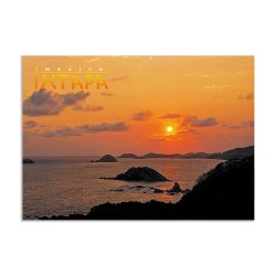 Tarjeta postal de una puesta de sol en Ixtapa. Con su vista hermosa y su impresion en cartulina importada de primera calidad, es un articulo base para el turista viajando en México y la mejor forma de compartir sus vacaciones en Ixtapa, México.