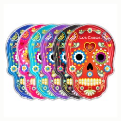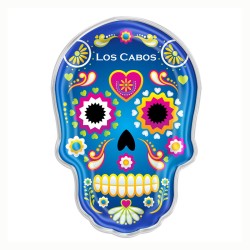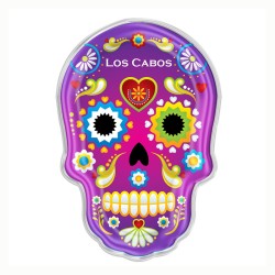 Ese magneto de acrílico en forma de calavera, típico de la tradición del día de Muertos en México está disponible en 6 colores diferentes: azul, cyan, morado, negro, rojo, rosa. Es el souvenir ideal para los turistas de vacaciones en Los Cabos.