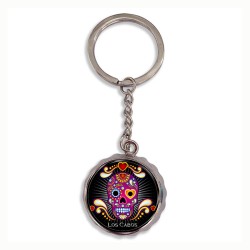 Llavero corcholata de metal calavera, Souvenir de Los Cabos, México