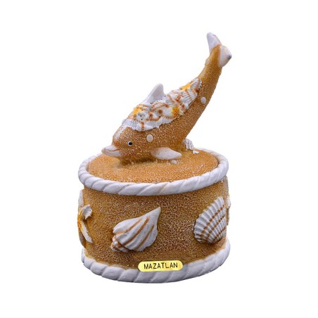 Alhajero de resina y arena con un delfín, souvenir y recuerdo de Mazatlan, Mexico.
