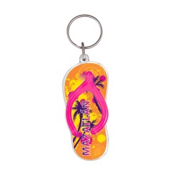 Ese llavero de acrílico en forma de chancla, típica de las playas de México está disponible en 8 motivos y colores diferentes. Es el souvenir ideal para los turistas de vacaciones en Mazatlan.