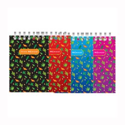 Libreta de apunte con la ilustración de un cactus, típico de la flor en México. Disponible en 4 colores diferentes, amarillo, azul, negro, rosa, es un regalo útil y original para recordar a las playas mexicanas.