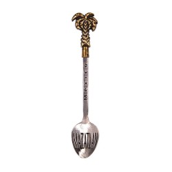 Cuchara de colección latón con la ilustración de una palmera, típica de las playas mexicanas. Hecho en México, es un souvenir ideal para que los turistas recuerden sus vacaciones en Mazatlan.