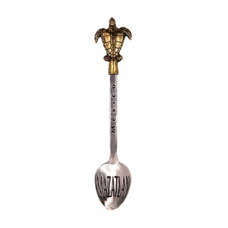 Cuchara de colección latón con la ilustración de una tortuga, típica de la fauna del país. Hecho en México, es un souvenir ideal para que los turistas recuerden sus vacaciones en Mazatlan.