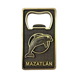 Magneto destapador con la ilustración de unos delfines, típicos de la fauna de México. Útil y decorativo, es el souvenir perfecto para pegar en el refrigerador y recordar sus vacaciones en Mazatlan.