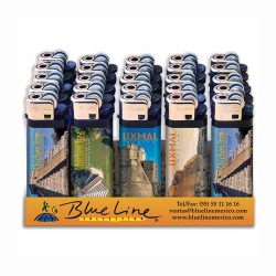 Encendedores con imágenes de los sitios arqueológicos más emblemáticos de la península de Yucatán. Caja de 25 encendedores. Artículo indispensable para tu tienda.