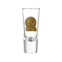 Un tequilero con la ilustración del Calendario Maya, emblemático de México para disfrutar el tradicional tequila mexicano recordando sus vacaciones en Mérida.