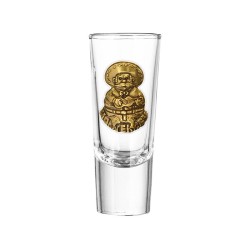 Tequilero con la ilustración de un mariachi tocando guitarra típico del folklor en México. Un recuerdo de tus vacaciones en Monterrey para disfrutar el tradicional tequila mexicano.