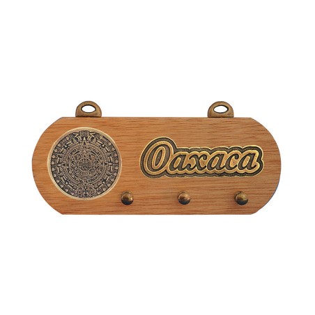 Ese portallave de madera con el Calendario Azteca en acabado laton, emblemático de la cultura prehispánica de México, es el recuerdo ideal para colgar las llaves de su casa. El souvenir perfecto para recordar sus vacaciones en Oaxaca.