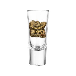 Tequilero con la ilustración de un Sombrero Mexicano en acabado latón, típico del folklor en México. Un recuerdo de tus vacaciones en Oaxaca para disfrutar el tradicional tequila mexicano.