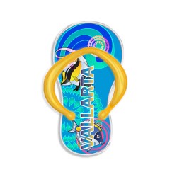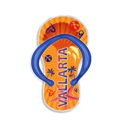 Ese magneto de acrílico en forma de chancla, típica de las playas de México está disponible en 8 motivos y colores diferentes. El souvenir ideal para pegar en su refrigerador como recuerdo de sus vacaciones en Puerto Vallarta.