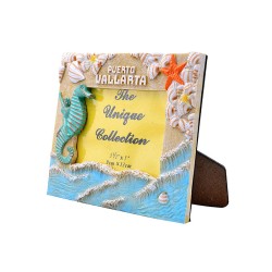 Ese portaretrato con la ilustración de un caballito y el mar, simbolos de Puerto Vallarta es el souvenir perfecto para enmarcar las fotos de los mejores momentos de un viaje a México.