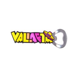 Destapador magnetico con el nombre de Puerto Vallarta. Útil y decorativo, ese recuerdo combina colores muy vivos. Es el souvenir perfecto para pegar en el refrigerador y recordar sus vacaciones en Puerto Vallarta.
