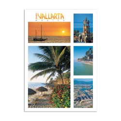 Tarjeta postal con varias vistas de Puerto Vallarta. Con su impresion en cartulina importada de primera calidad, es un articulo base para el turista viajando en México y la mejor forma de compartir sus vacaciones en Puerto Vallarta, México.