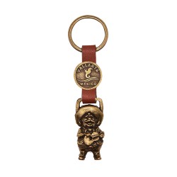Llavero de latón en forma de un mariachi tocando guitara, típico del país. Hecho en México, es el souvenir ideal para los turistas de vacaciones en Puerto Vallarta.