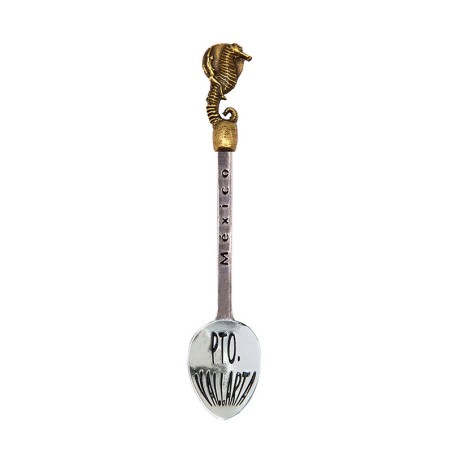 Cuchara de colección latón con la ilustración de un caballito de mar, típico de la fauna del país. Hecho en México, es un souvenir ideal para que los turistas recuerden sus vacaciones en Puerto Vallarta.
