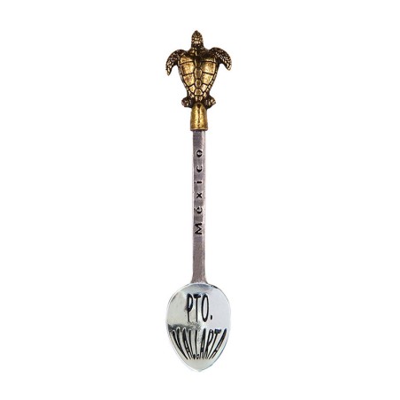 Cuchara de colección latón con la ilustración de una tortuga, típica de la fauna del país. Hecho en México, es un souvenir ideal para que los turistas recuerden sus vacaciones en Puerto Vallarta.