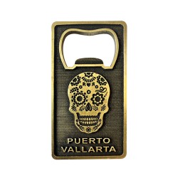 Magneto destapador con la ilustración de una calavera, típica de la tradición del día de Muertos en México. Útil y decorativo, es el souvenir perfecto para pegar en el refrigerador y recordar sus vacaciones en Puerto Vallarta.