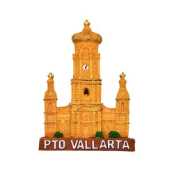 Magneto de resina representando la Iglesia de Puerto Vallarta, emblemática de Puerto Vallarta. El souvenir ideal para pegar en el refrigerador y recordar sus vacaciones en México.