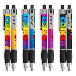 Plumas con el nombre de México. Disponible en 4 colores diferentes, amarillo, azul, negro, morado, es un recuerdo económico y útil de unas vacaciones en la Ciudad de México, CDMX.