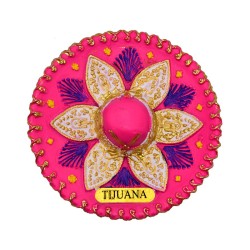 Magneto de resina pintado a mano en forma de un sombrero charro, típico del México. El souvenir ideal para pegar en su refrigerador y recordar sus vacaciones a Tijuana.
